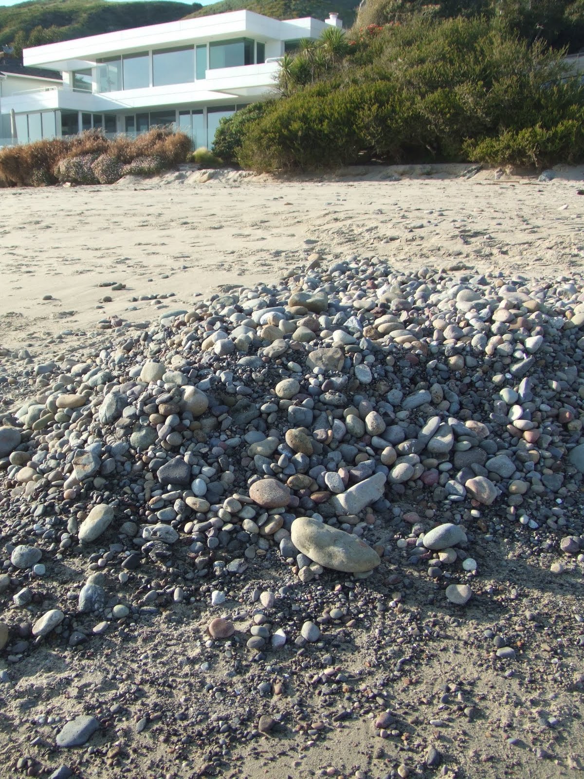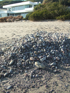 Liz and I have been walking every morning on Carbon Beach here in Malibu, and the action of the surf here is quite extraordinary. Huge piles of rocks appear and then disappear on the beach - often a complete change from one day to the next.